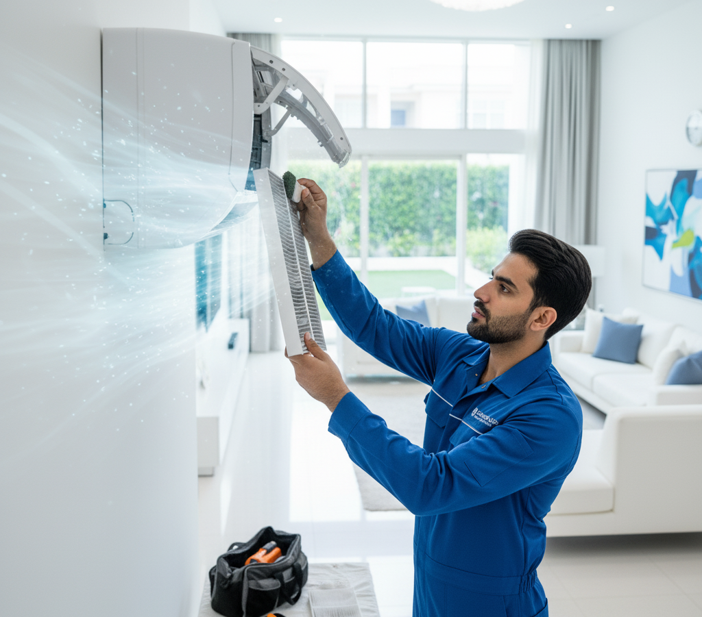 Our AC cleaning & repair in Jumeirah Park Dubai service is a deep-cleaning process that includes cleaning the indoor and outdoor unit coils, blower components, drain pans, and filters. This improves efficiency, cooling power, and indoor air quality.